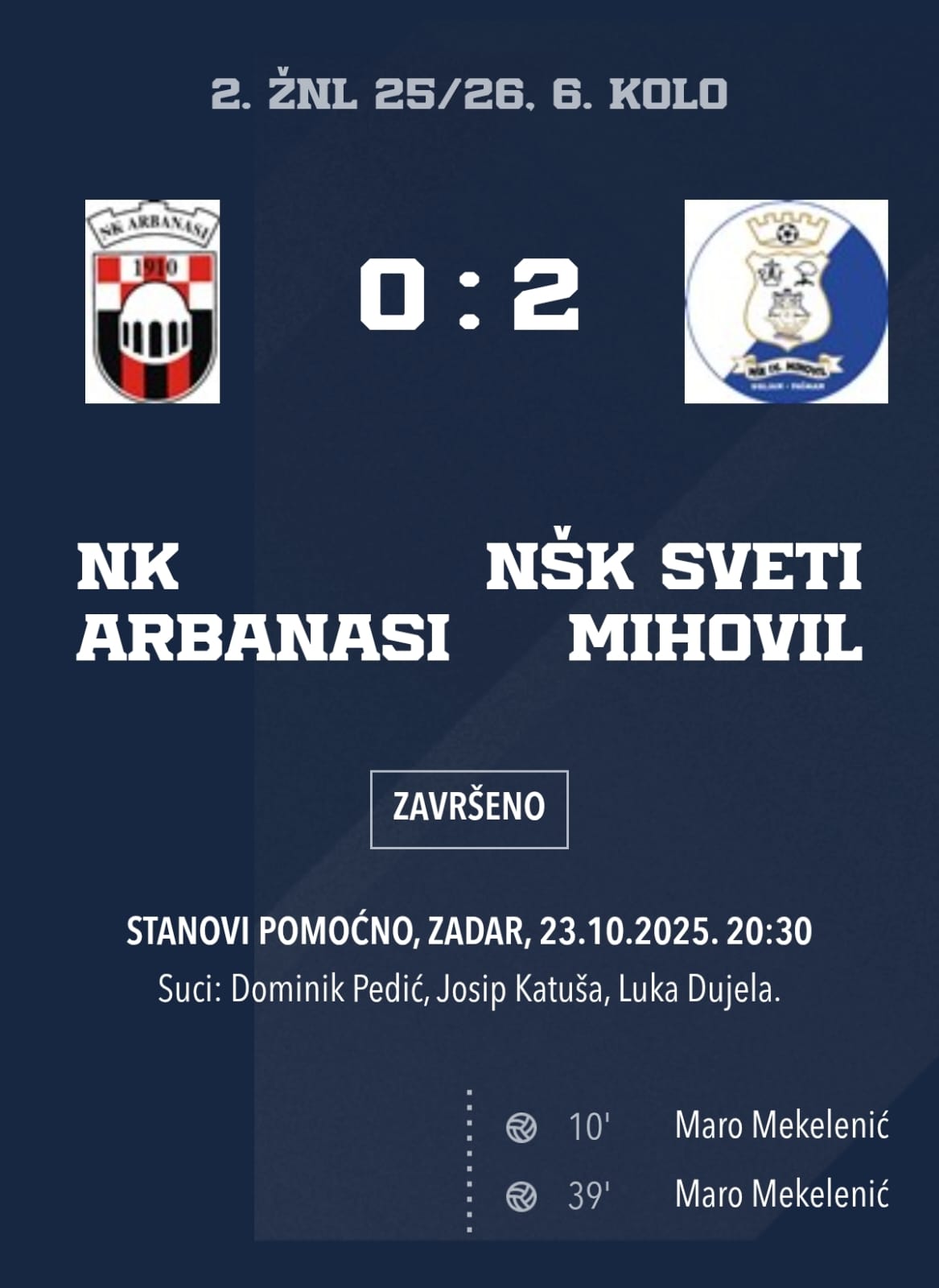 Oba pogotka za našu momčad postigao je Maro Mekelenić, koji se u oba navrata sjajno snašao u domaćem kaznenom prostoru i preciznim udarcima donio nova tri boda Sv. Mihovilu.